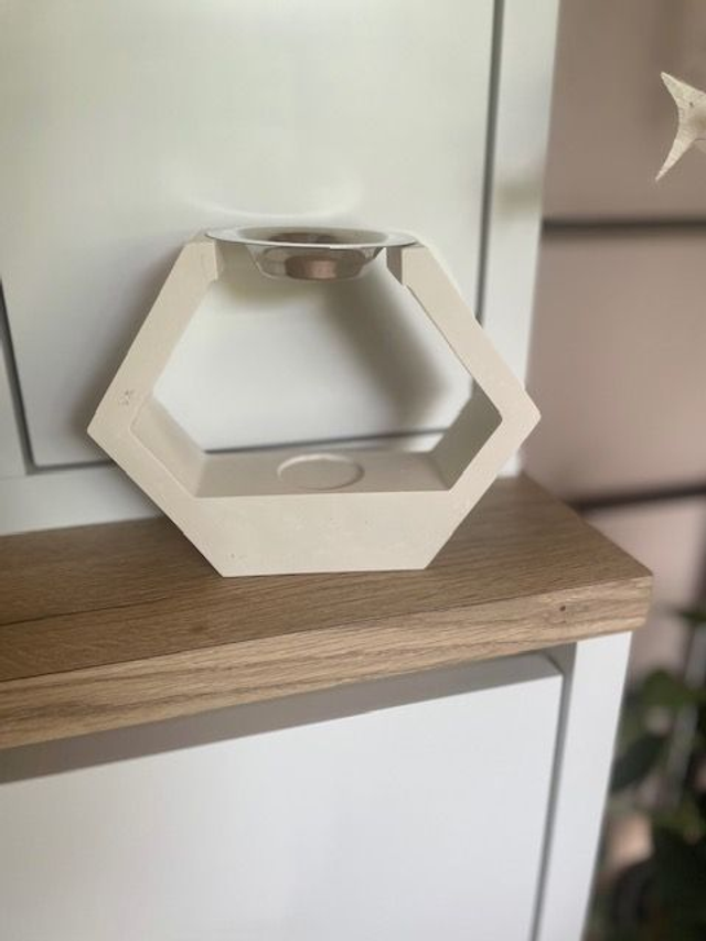 Brûleur en jesmonite disponible en deux coloris. Sa coupelle permettra d'y déposer un fondant (disponible à l'unité). La bougie chauffe plat déposée en dessous le fera fondre et vous permettra de parfumer votre intérieur.
